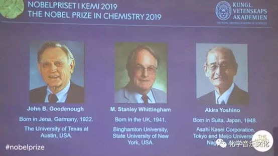 10月9日,瑞典皇家科学院宣布,将2019年诺贝尔化学奖授予德州大学奥斯汀分校教授约翰•B •古迪纳夫(John B. Goodenough)、纽约州立大学宾汉姆顿分校教授M•斯坦利•威廷汉(M. Stanley Whittingham)、以及日本名城大学教授吉野彰,以表彰他们“在发明锂电池过程中做出的贡献”。